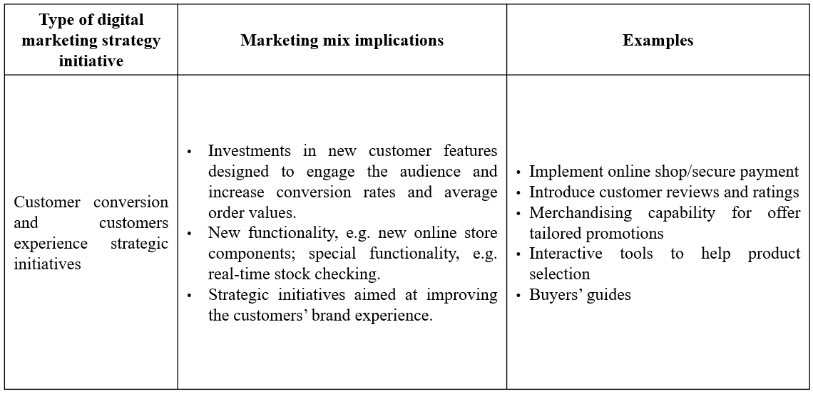 Typical focus for main types of strategic digital marketing initiatives.