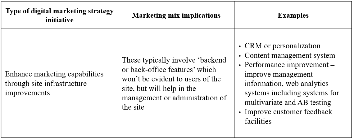 Typical focus for main types of strategic digital marketing initiatives.