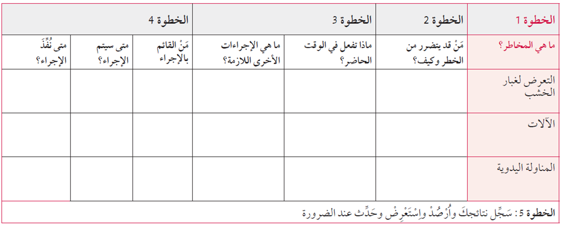 الخطوة الاولى: تحديد المخاطر