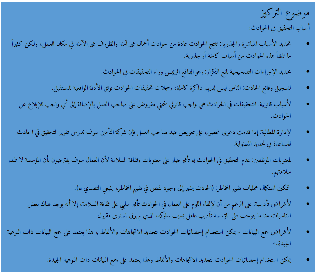 التحقيق والتسجيل والإبلاغ عن الحوادث