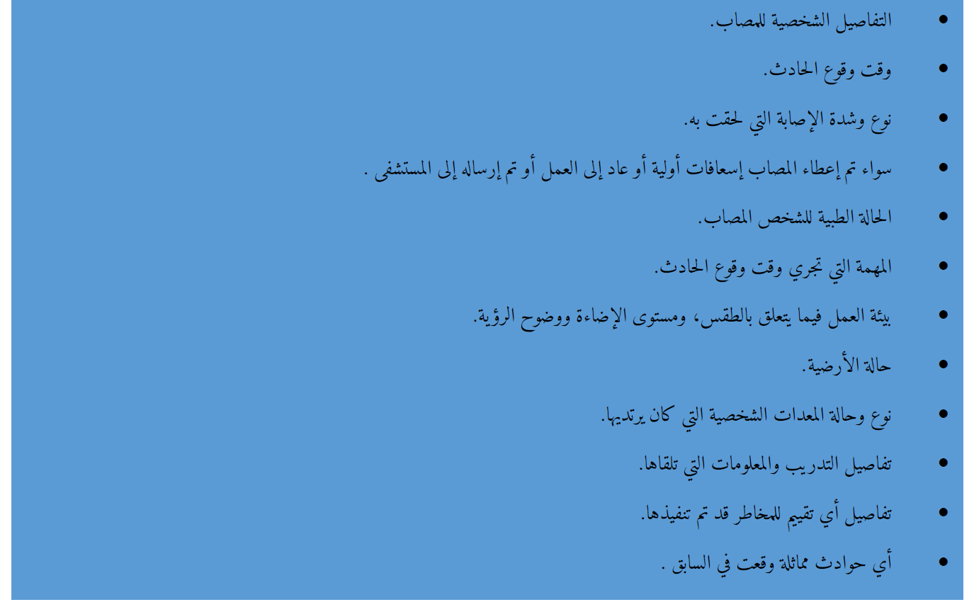 العناصر التي يمكن إدراجها في قائمة التحقيق في الحوادث