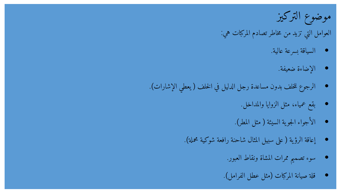 العوامل التي تزيد من مخاطر تصادم المركبات