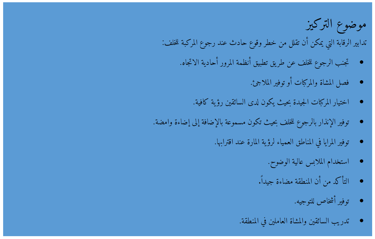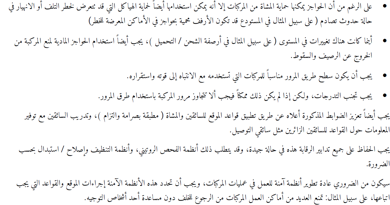 التدابير اللازمة للسيطرة على المخاطر الناتجة عن عمليات المركبات