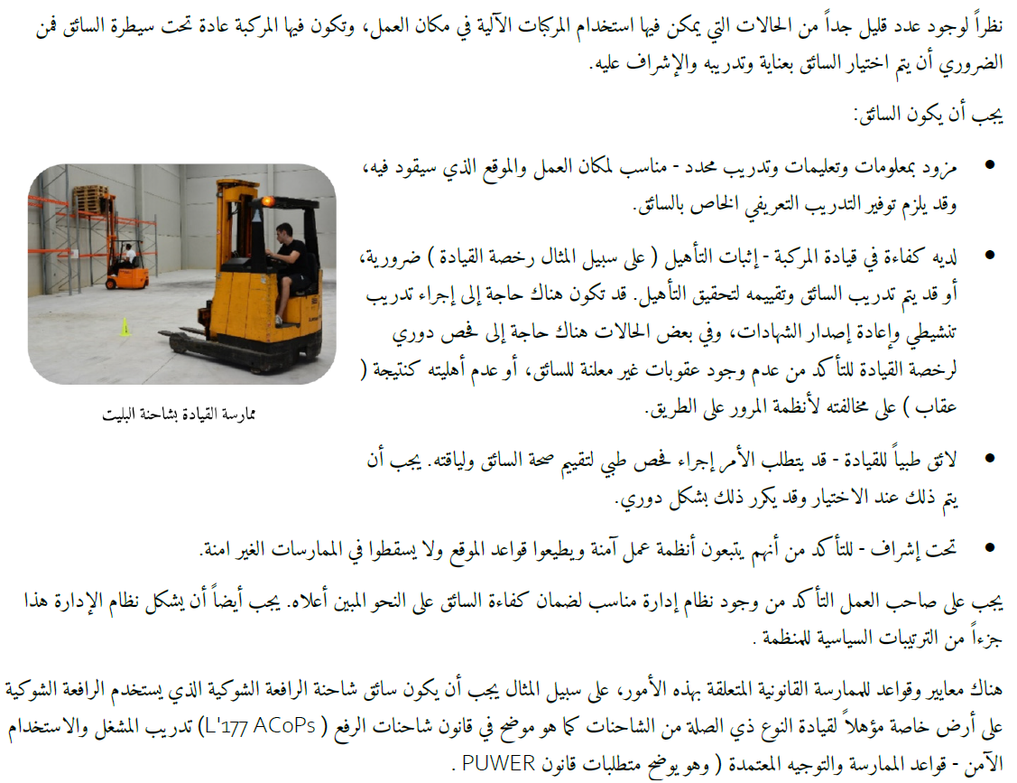 الحركة الآمنة للأشخاص والمركبات في مكان العمل