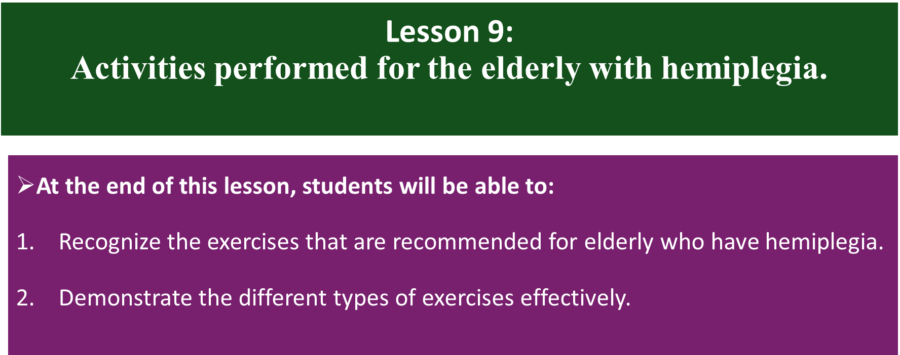 Activities performed for the elderly with hemiplegia